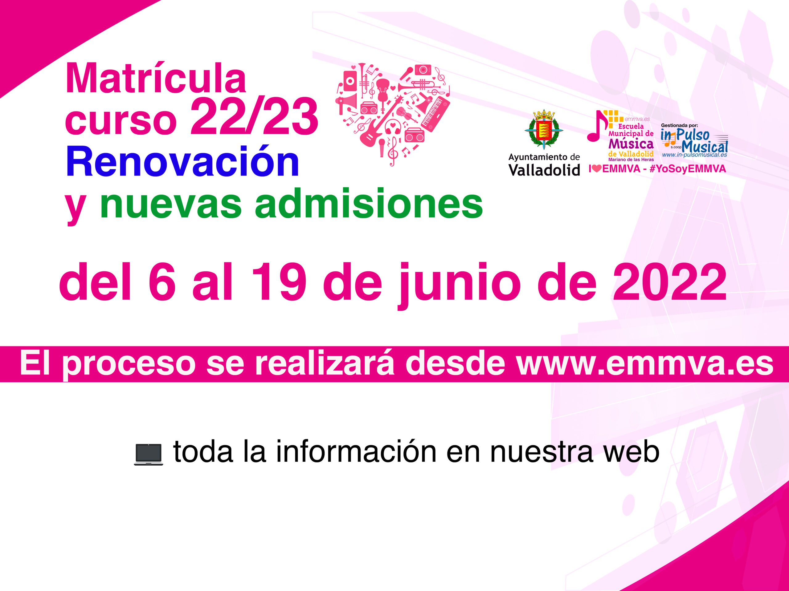 La Escuela Municipal de Música de Valladolid abre el plazo de renovación de matrícula y admisión de nuevos alumnos el lunes 6 de junio