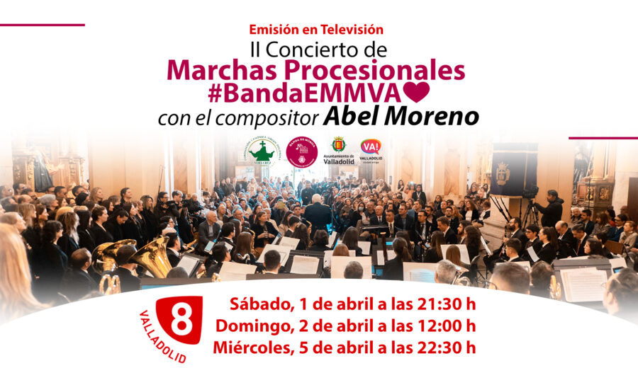 Emisión en la 8 Valladolid TV del II Concierto de Marchas Procesionales Banda EMMVA con la participación del compositor Abel Moreno