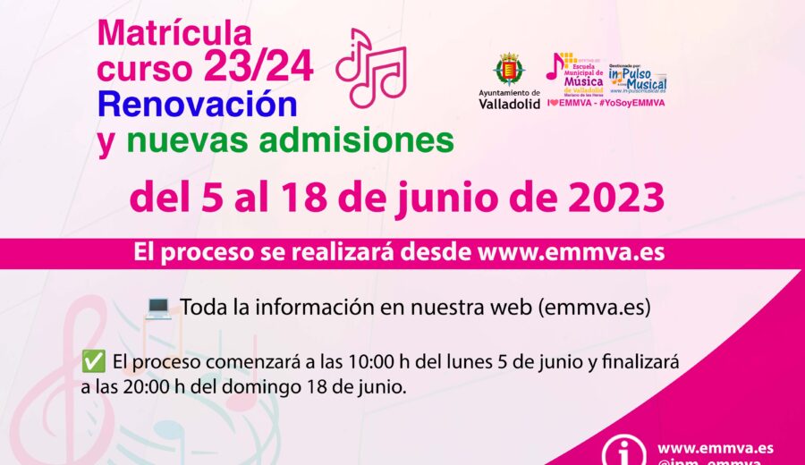 La Escuela Municipal de Música de Valladolid abre el plazo de renovación de matrícula y admisión de nuevos alumnos el lunes 5 de junio
