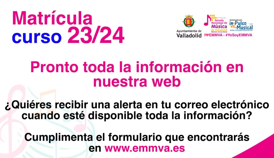 ¿Quieres recibir una alerta en tu correo electrónico cuando esté disponible la información sobre el proceso de matrícula para el curso 2023 – 2024? Cumplimenta el formulario que encontrarás al hacer clic aquí