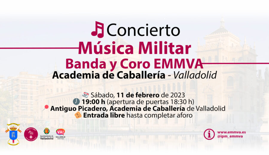 La Banda y el Coro de la Escuela Municipal de Música del Ayuntamiento de Valladolid ofrecerá un concierto de Música Militar el sábado 11 de febrero en la Academia de Caballería