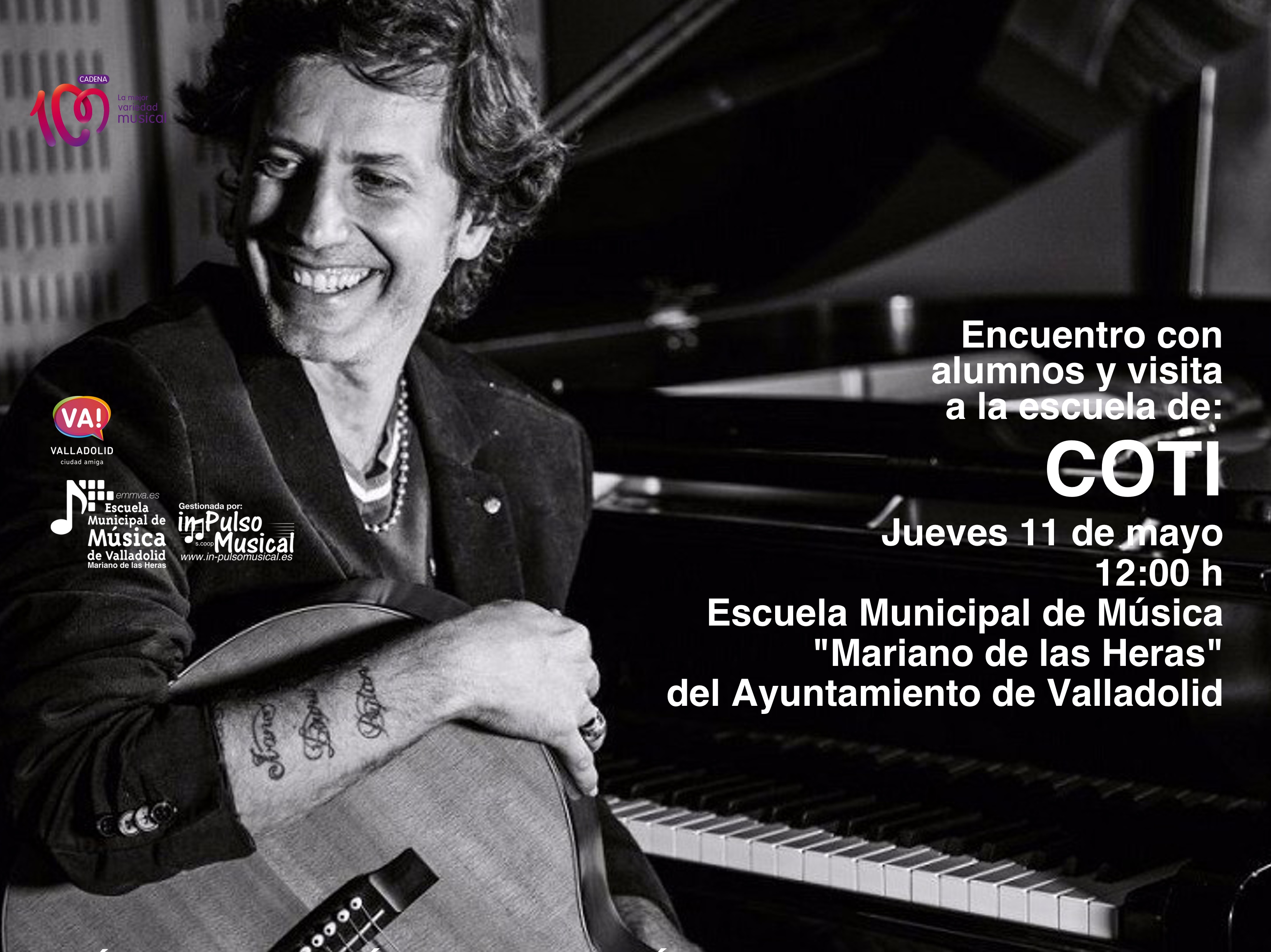 El jueves 11 de mayo a las 12:00 h la Escuela Municipal de Música “Mariano de las Heras” del Ayuntamiento de Valladolid recibirá la visita de COTI aprovechando su visita a Valladolid con motivo del concierto que ofrecerá esa tarde en la Sala Concha Velasco del LAVA en Valladolid.