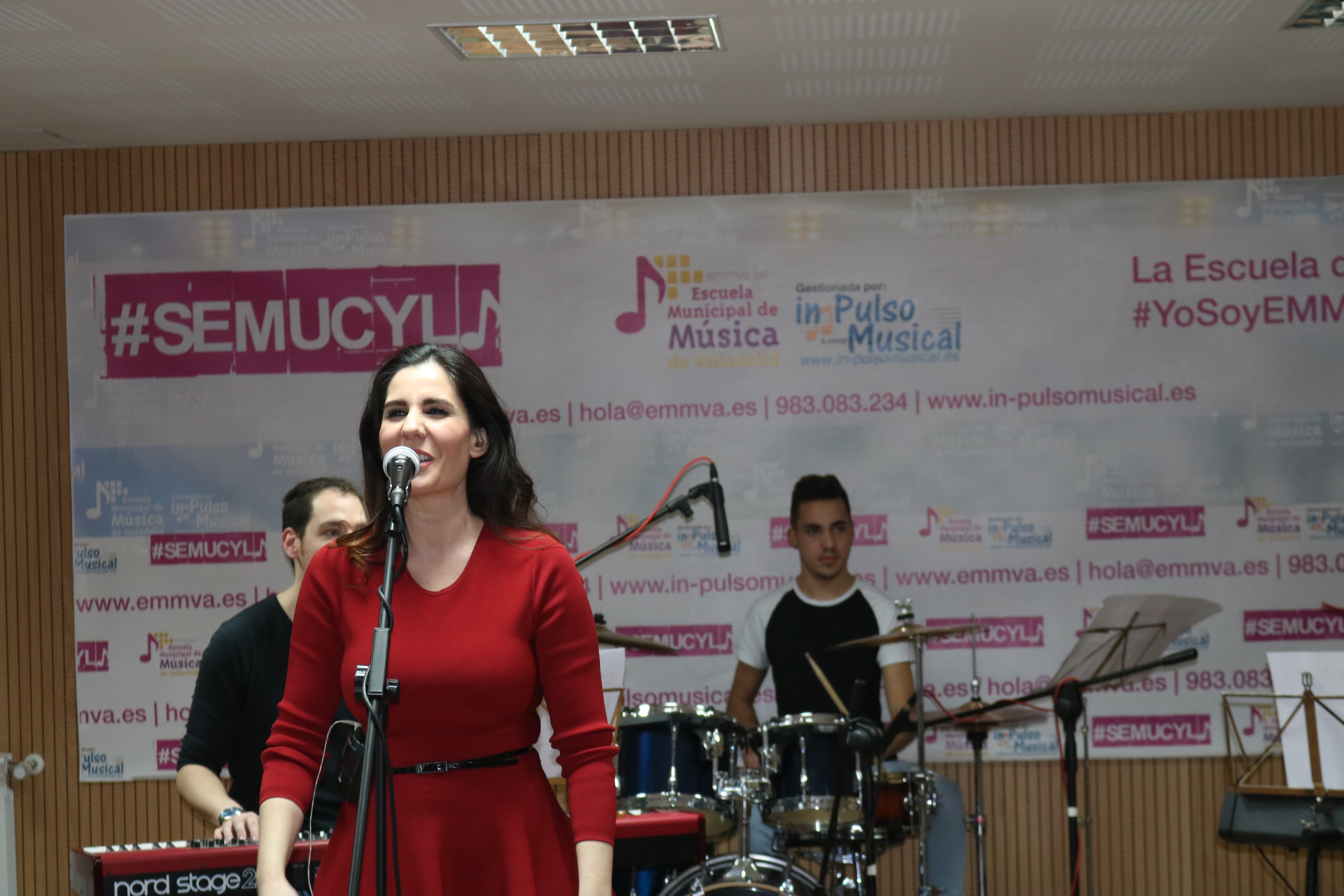 La intérprete y compositora malagueña Diana Navarro visitó en la tarde de ayer la Escuela Municipal de Música “Mariano de las Heras” del Ayuntamiento de Valladolid.