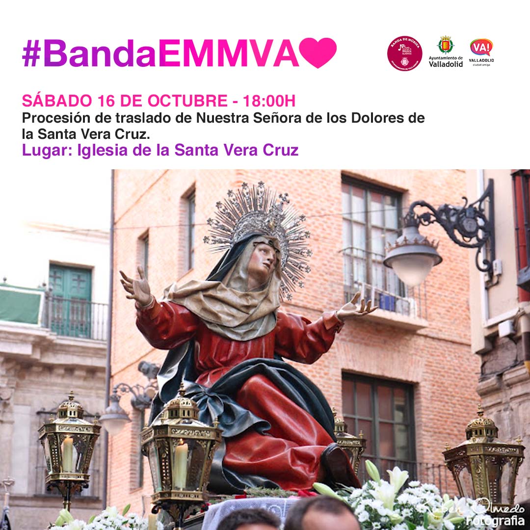 la Banda EMMVA participará en la procesión de traslado de la imagen de la Virgen de los Dolores de la cofradía de la Santa Vera Cruz, que partirá a las 18:00 h de la Iglesia de la Vera Cruz.