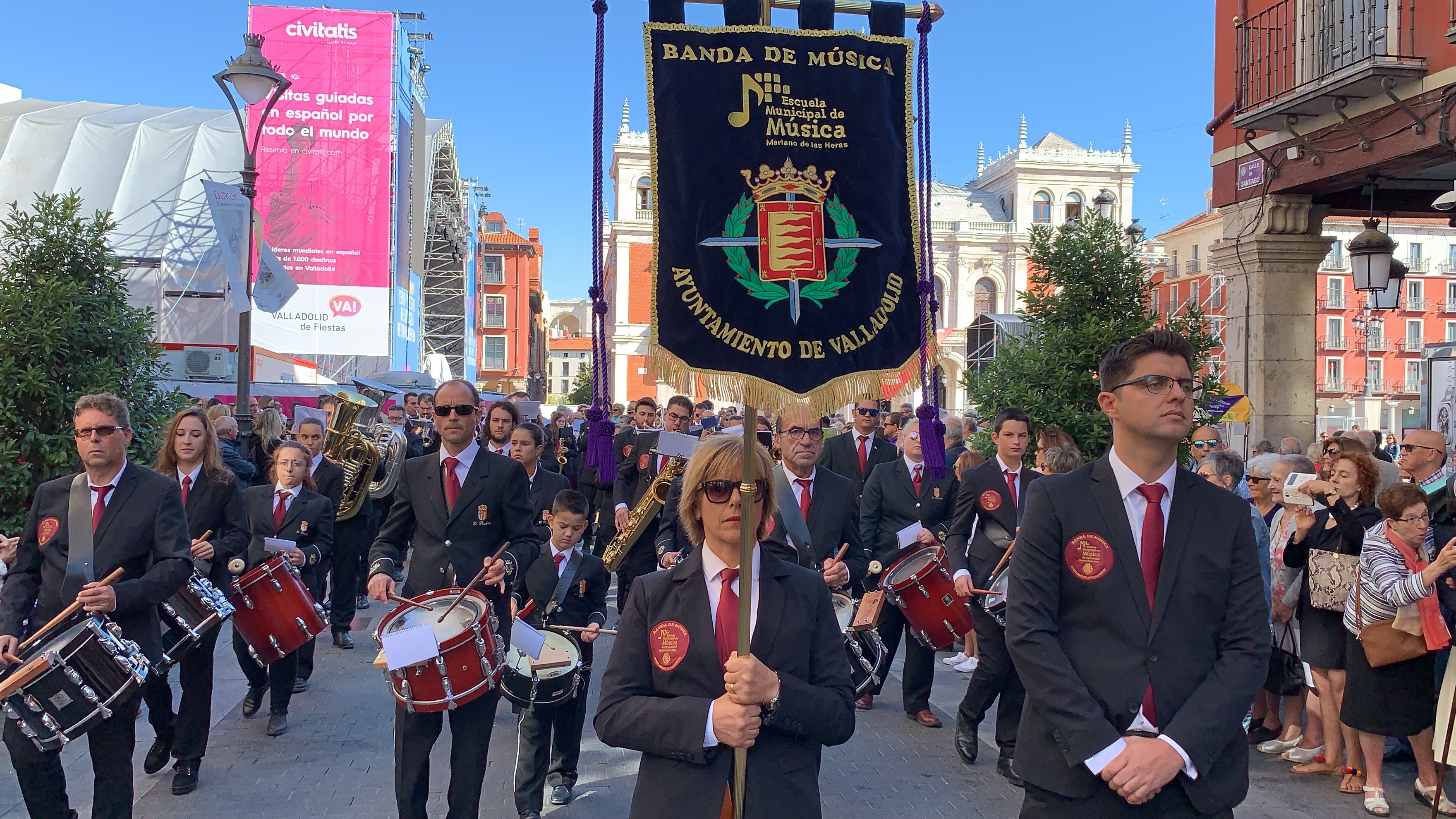 La Banda de la Escuela Municipal de Música «Mariano de las Heras» del Ayuntamiento de Valladolid, tuvo el honor de acompañar a la Patrona de Valladolid en la Procesión de Nuestra Señora de San Lorenzo durante la celebración de las fiestas de Valladolid 2019.