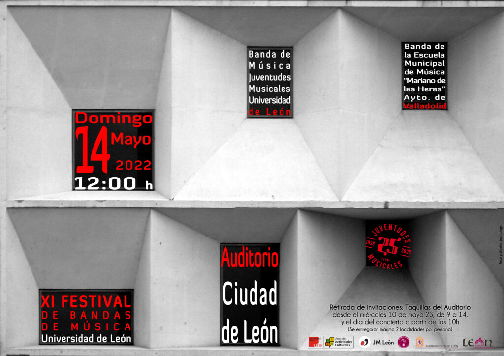 El domingo 14 de mayo la Banda EMMVA se trasladará a León donde participará junto a la Banda de Música Juventudes Musicales de la Universidad de León en el XI Festival de Bandas de Música “Universidad de León” que se celebrará desde las 12:00 h en el Auditorio Ciudad de León.