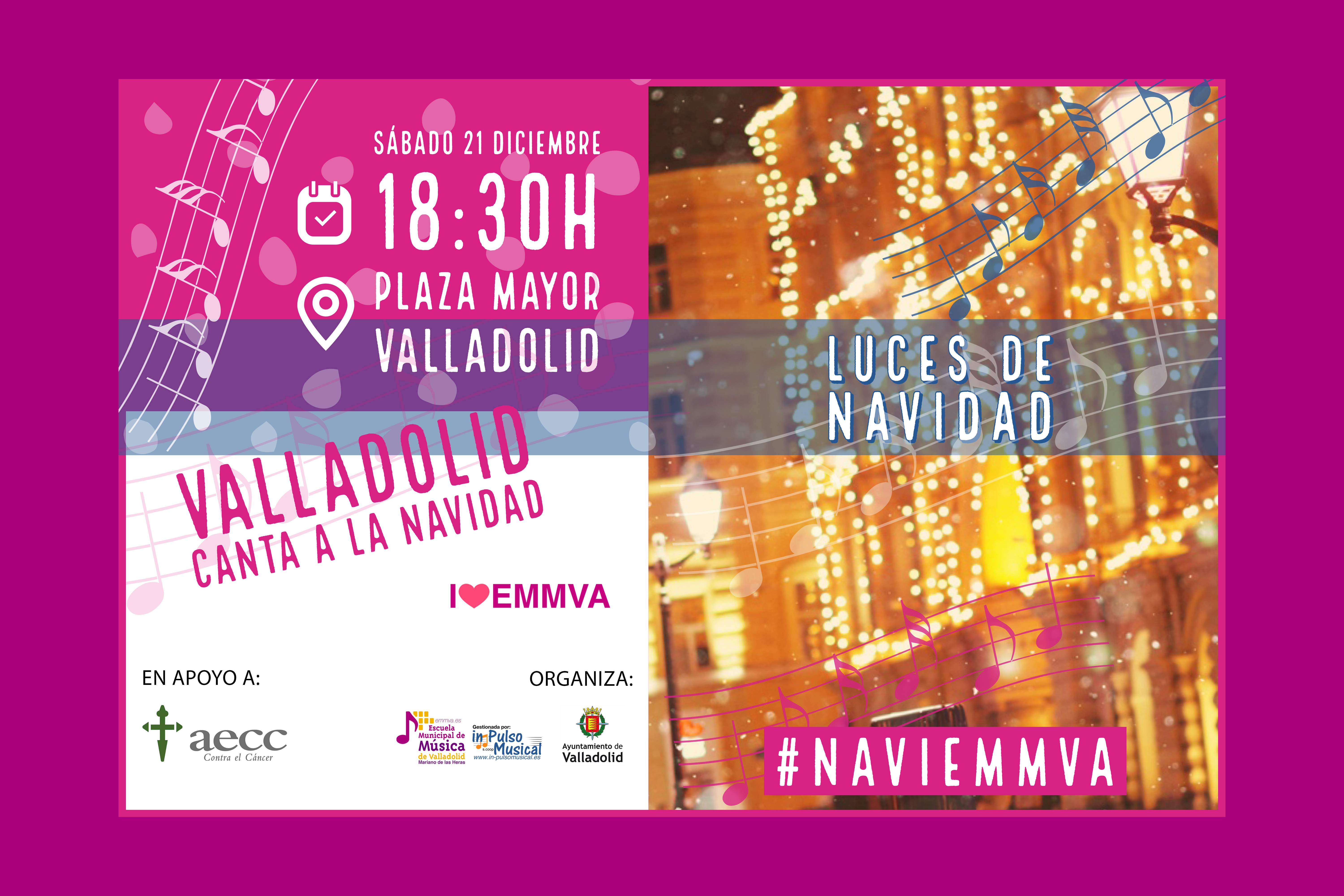 Este villancico que va a ser el eje central de “#NaviEMMVA: Valladolid le canta a la Navidad” está a disposición de todos en la página web de la EMMVA (https://prueba.emmva.es/naviemmva/) para que todo aquel que lo deseé, pueda aprenderlo y venir a cantarlo con nosotros el sábado 21 de diciembre a las 18:30 h a la Plaza Mayor de Valladolid en favor de la AECC.