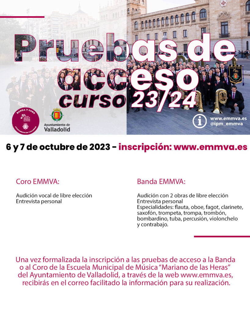 La Escuela Municipal de Música “Mariano de las Heras” del Ayuntamiento de Valladolid convoca pruebas de acceso para la Banda y el Coro EMMVA.