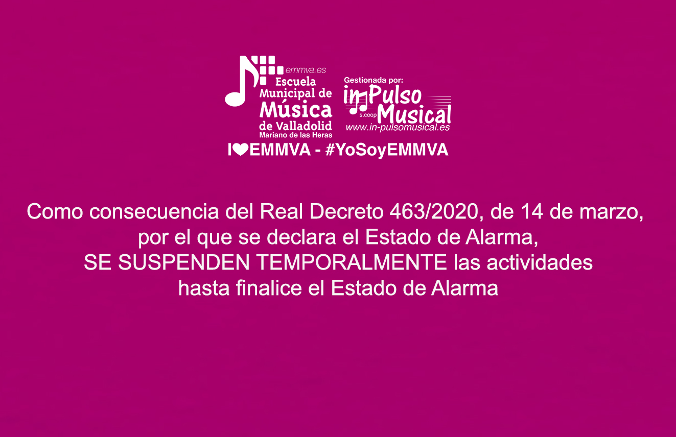Desde el Ayuntamiento de Valladolid, y desde la Escuela Municipal de Música «Mariano de las Heras», confiamos en que todo el alumnado comprenda la necesidad de adoptar este tipo de medidas, siendo responsables con las circunstancias de salud pública que estamos viviendo, siguiendo en todo momento las recomendaciones de las autoridades sanitarias.